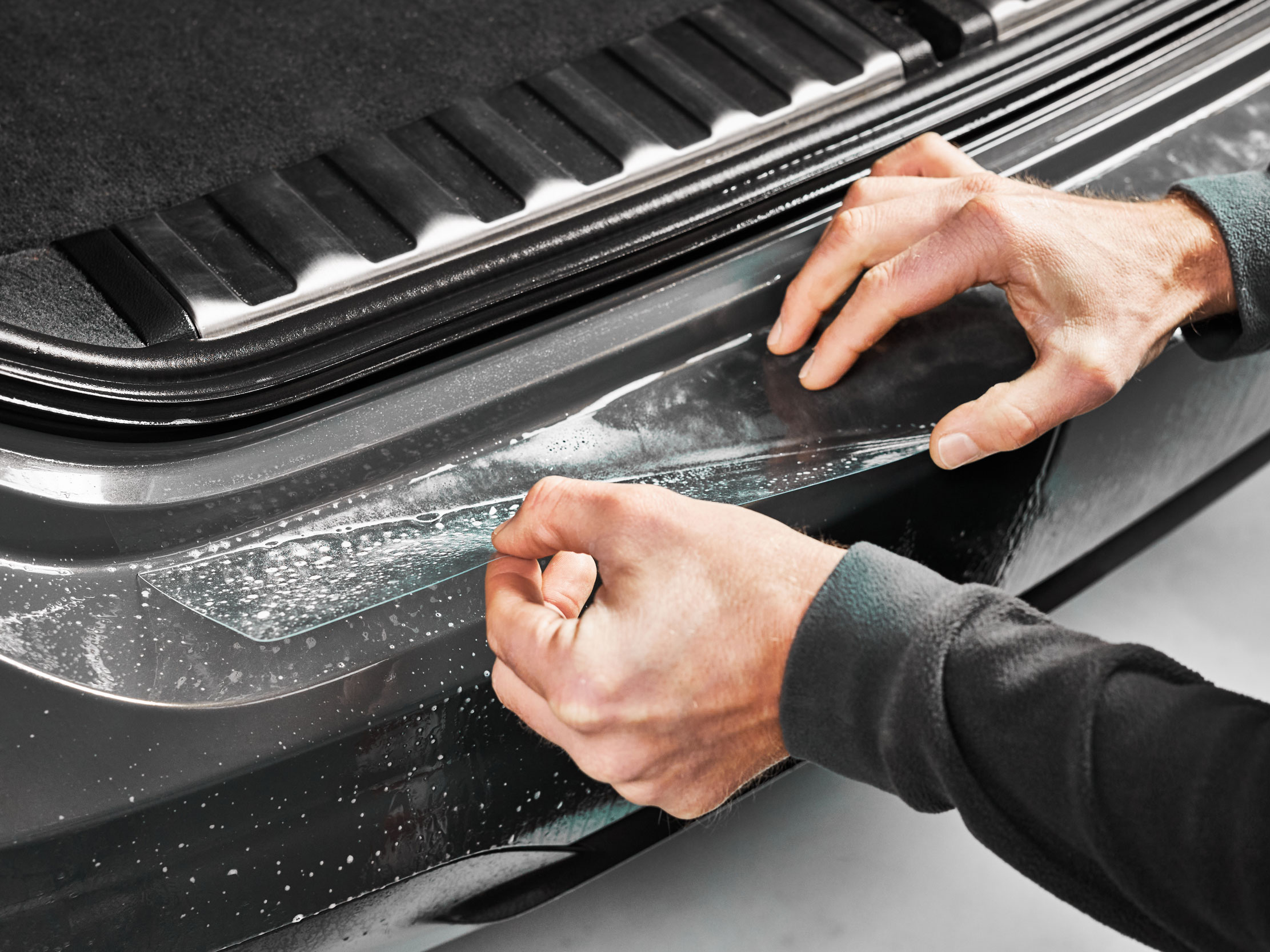 Positionieren Sie die Folie mittig im Lade-kantenbereich des hinteren Stoßfänger.