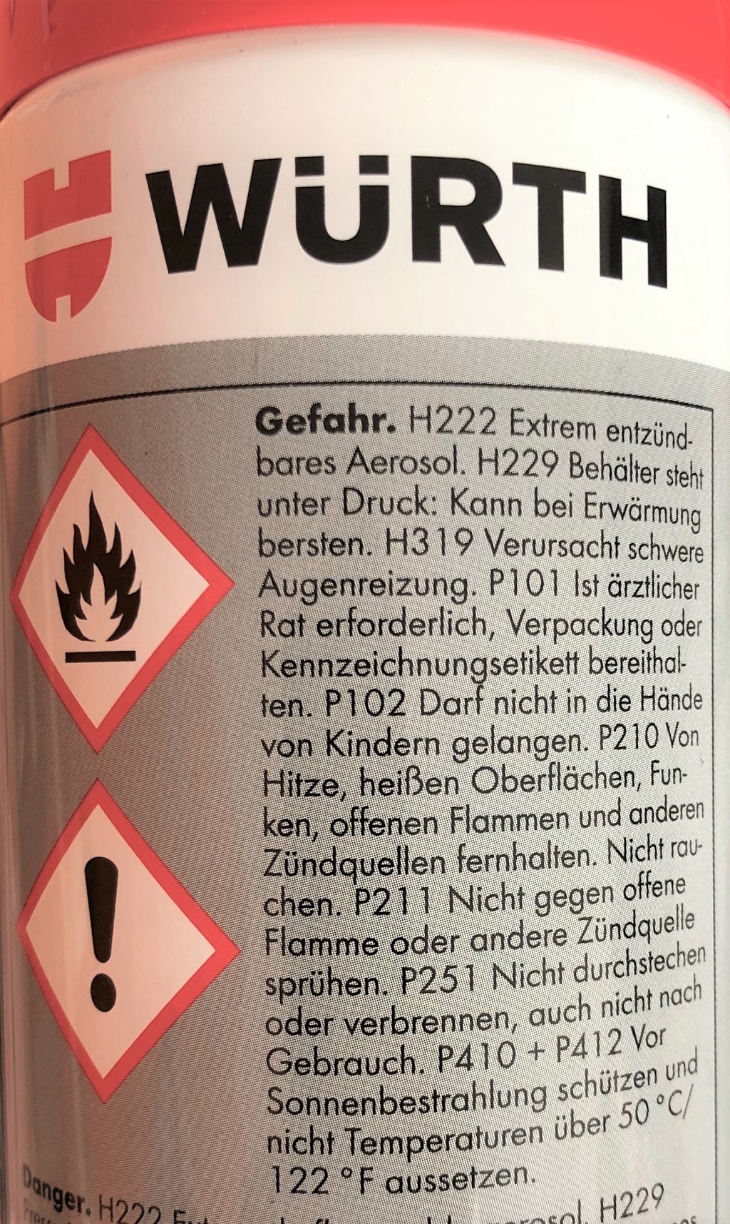Einstufung des Stoffs oder Gemischs Einstufung (VERORDNUNG (EG) Nr. 1272/2008) Aerosole, Kategorie 1 H222: Extrem entzündbares Aerosol. H229: Behälter steht unter Druck: Kann bei Erwärmung bersten. Augenreizung, Kategorie 2 H319: Verursacht schwere Augenreizung. Gefahrenhinweise : H222 Extrem entzündbares Aerosol. H229 Behälter steht unter Druck: Kann bei Erwärmung bersten. H319 Verursacht schwere Augenreizung. Sicherheitshinweise : Prävention: P210 Von Hitze, heißen Oberflächen, Funken, offenen Flammen und anderen Zündquellen fernhalten. Nicht rauchen. P211 Nicht gegen offene Flamme oder andere Zündquelle sprühen. P251 Nicht durchstechen oder verbrennen, auch nicht nach Gebrauch. P280 Augenschutz/ Gesichtsschutz tragen. Reaktion: P337 + P313 Bei anhaltender Augenreizung: Ärztlichen Rat einholen/ ärztliche Hilfe hinzuziehen. Lagerung: P410 + P412 Vor Sonnenbestrahlung schützen und nicht Temperaturen über 50 °C/122 °F aussetzen. Sonstige Gefahren Kann den Sauerstoff verdrängen und eine schnelle Erstickung verursachen.